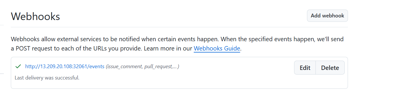 - Secret: 앞서 설정한 웹훅 비밀 문자열